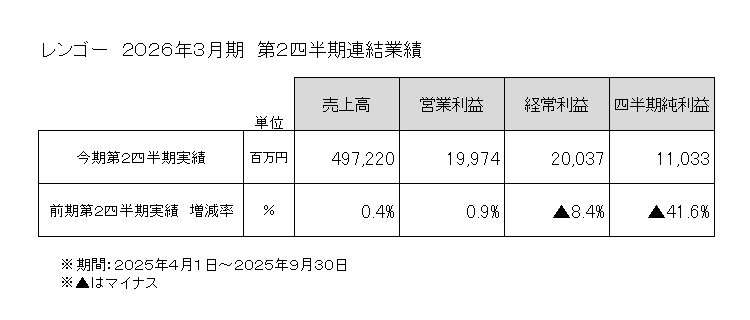 レンゴーは11月6日、2026年3月期第2四半期(2025年4月1日~2025年9月30日)の連結業績を発表しました。