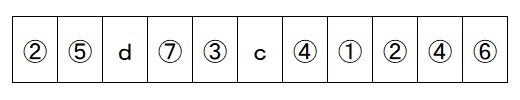 取り出したアルファベットを下のそれぞれ対応するマスに入れたとき