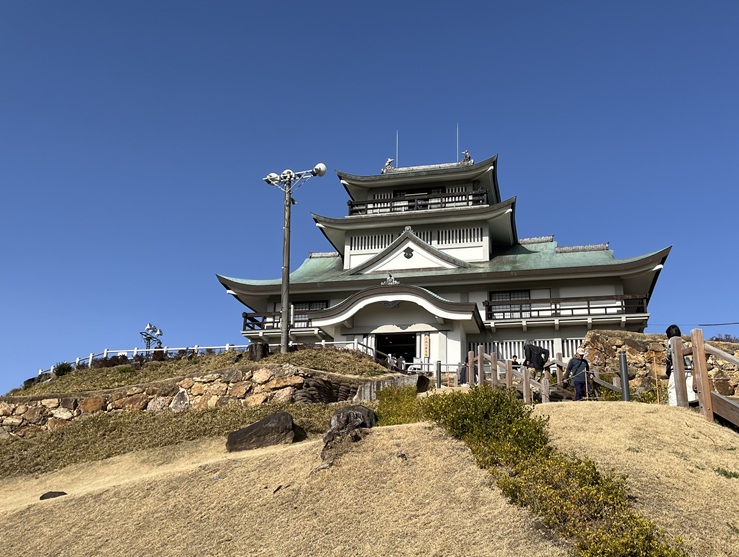 ※小牧山城跡に設けられた小牧山歴史館。令和3年度より発掘調査に基づいた石垣の復元整備が小牧市により実施されています。5つのCGスポットでは小牧山城の再現CGを楽しむこともできます。(写真撮影:MK)