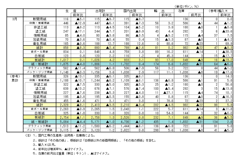2026年3月全国紙・板紙需給速報