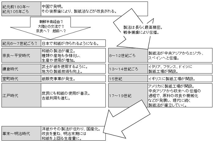 「製紙が日本に伝わった経緯は習った?」